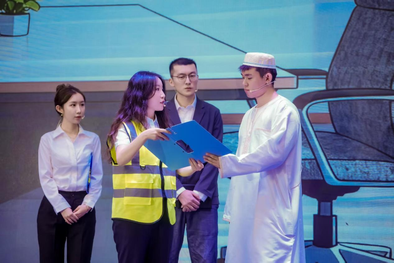 西北公司參賽選手精心選題、團(tuán)結(jié)協(xié)作,編排了情景劇《Rail of Friendship-友誼之軌》,情景劇以集團(tuán)公司出口供應(yīng)雅萬高鐵鋼軌為背景,講述了海外工程項(xiàng)目中“物資人”克服技術(shù)困難、文化差異,最終完成雅萬高鐵鋼軌物資供應(yīng)并與當(dāng)?shù)厝嗣窠⑸詈裼颜x的感人故事。西北公司團(tuán)隊(duì)通過前期認(rèn)真準(zhǔn)備、刻苦排練,在決賽中呈現(xiàn)了一場形式新穎、配合默契、幽默詼諧的精彩演出,獲得了現(xiàn)場評委和觀眾的一致好評,榮獲“團(tuán)體賽三等獎”。